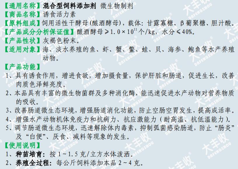 湛江大豐收公司誘食活力素產(chǎn)品說明書